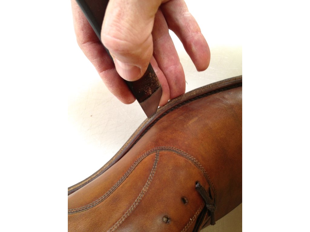 MALÝ SERVIS - výměna opotřebených patníků, oprava špiček, zabroušení a zabarvení hran spodků obuvi, napnutí obuvi, odstranění nečistot, aplikace prostředků na ošetření kůže (usně), ošetření spodků obuvi, leštění do vysokého lesku, výměna kožených stélek, nové tkaničky - cena : 1500,- Kč
