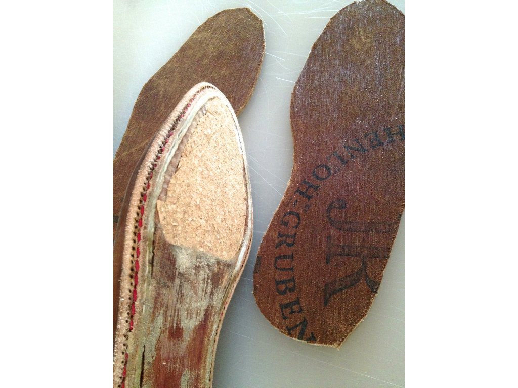 KOMPLETNÍ SERVIS - vyjmutí staré stélky, oprava vydřených podšívek v patách, napnutí obuvi, odstranění nečistot, rozebrání podpatků a odpárání prochozených podešví, oprava půdování, příprava a přišití nových podešví, postavení nových podpatků, zabroušení a zabarvení hran spodků obuvi, aplikace prostředků na ošetření kůže (usně), ošetření spodků obuvi, leštění do vysokého lesku, nové kožené stélky, nové tkaničky - cena: 10000,- Kč