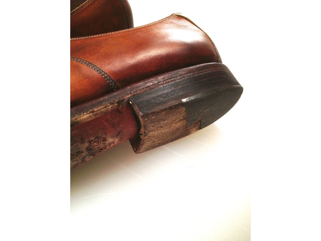 STŘEDNÍ SERVIS - výměna opotřebených patníků, výměna krycích podrážek nebo nové podražení nebo oprava vydřených podšívek v patách, zabroušení a zabarvení hran spodků obuvi, napnutí obuvi, odstranění nečistot, aplikace prostředků na ošetření kůže (usně), ošetření spodků obuvi, leštění do vysokého lesku, výměna kožených stélek, nové tkaničky - cena: 2500,- Kč