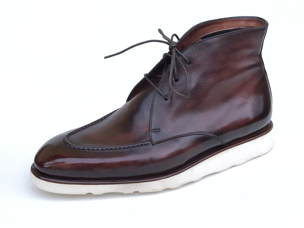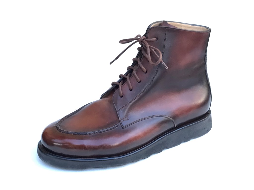 Kvalitně zpracovaná kožená ručně šitá vycházková obuv s lehkým a ohebným spodkem Vibram.