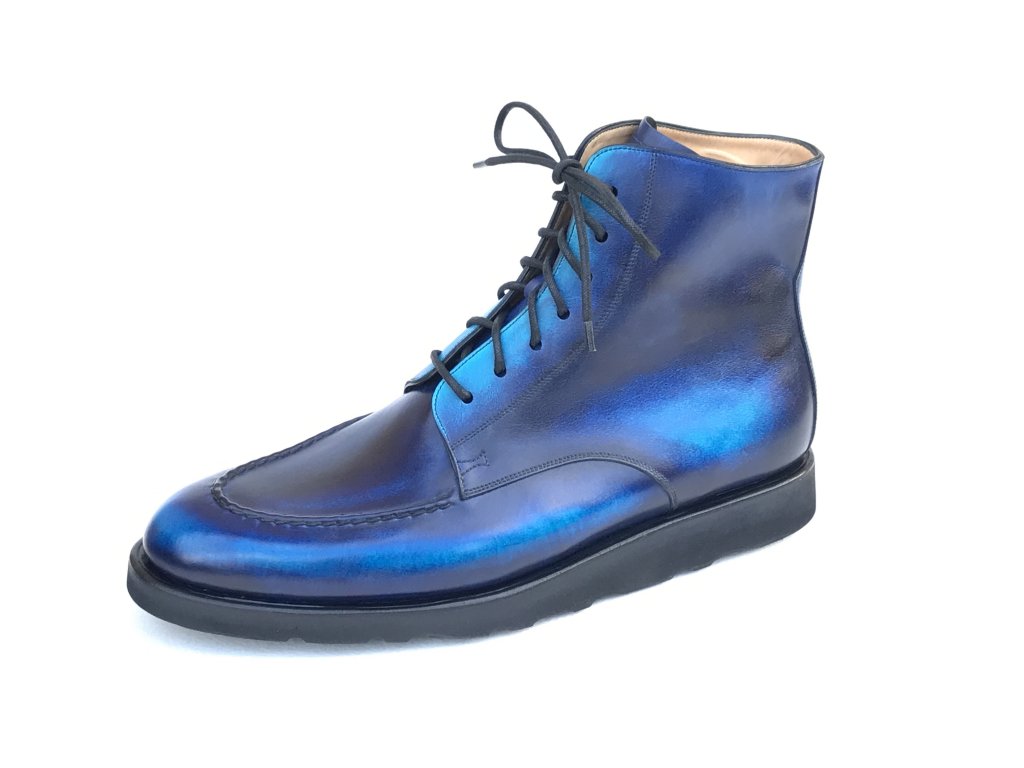 Volnočasovou obuv na zakázku vyrábíme stejnou technologií, ze stejného materiálu a ve stejné kvalitě jako naše boty na míru. Na ničem nešetříme. Výroba na zakázku je rychlejší. Obvykle jsou boty hotové do dvou až tří měsíců. Cena je nižší než u prvního páru bot na míru, protože při výrobě používáme standardní velikosti a tvary kopyt a také předem připravené šablony střihů.